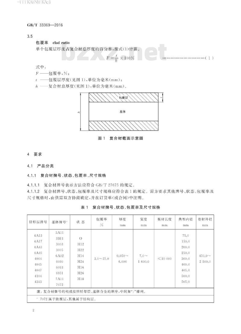 4.1.1复合材牌号、状态、包覆率、尺寸规格4.1.1.1