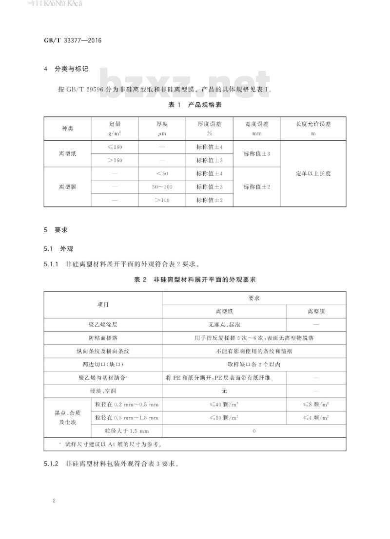 5.1.1非硅离型材料展开平面的外观符合表2要求。宽度误差