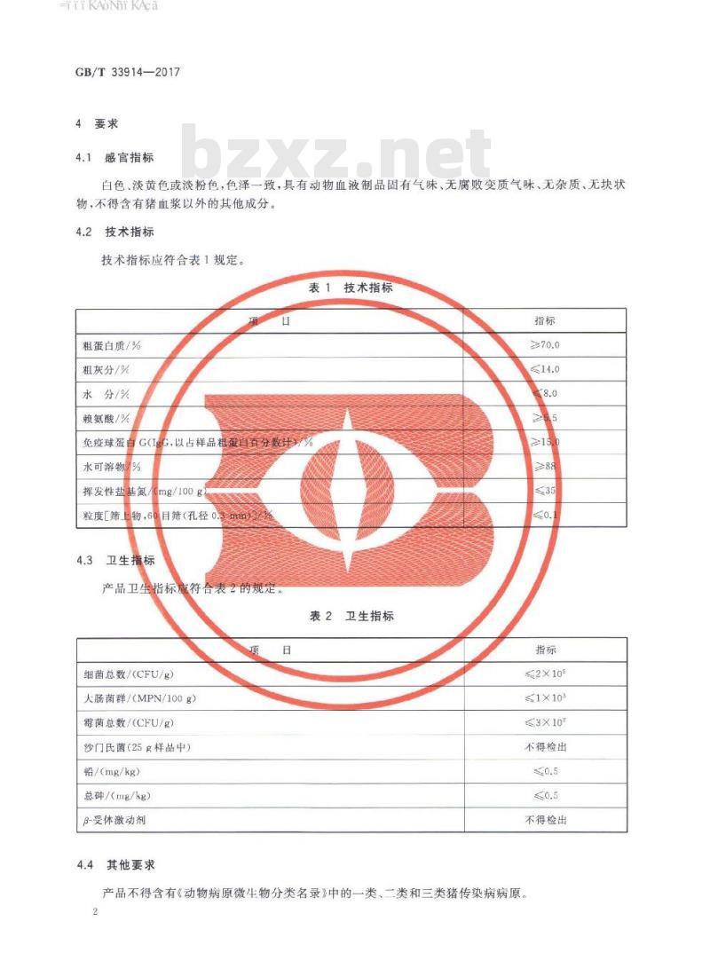 - GB∕T 33914-2017 饲料原料 喷雾干燥猪血浆蛋白粉