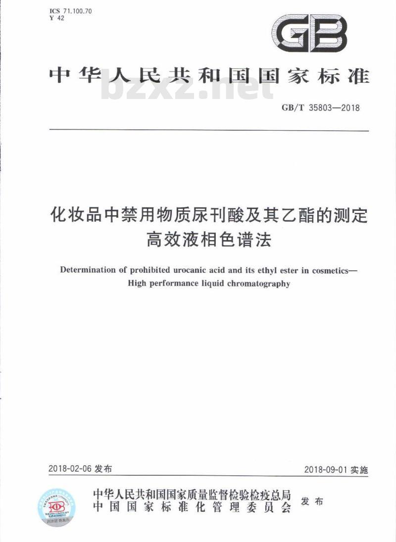 - GB/T 35803-2018 化妆品中禁用物质尿刊酸及其乙酯的测定 高效液相色谱法