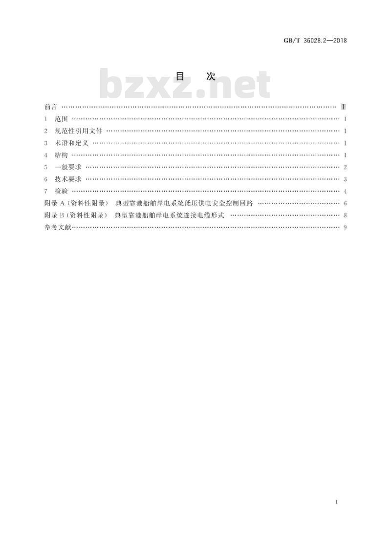 GB/T36028的本部分规定了靠港船舶岸电系统低压供电(低压上船)的结构、一般要求,技术要求及检验。