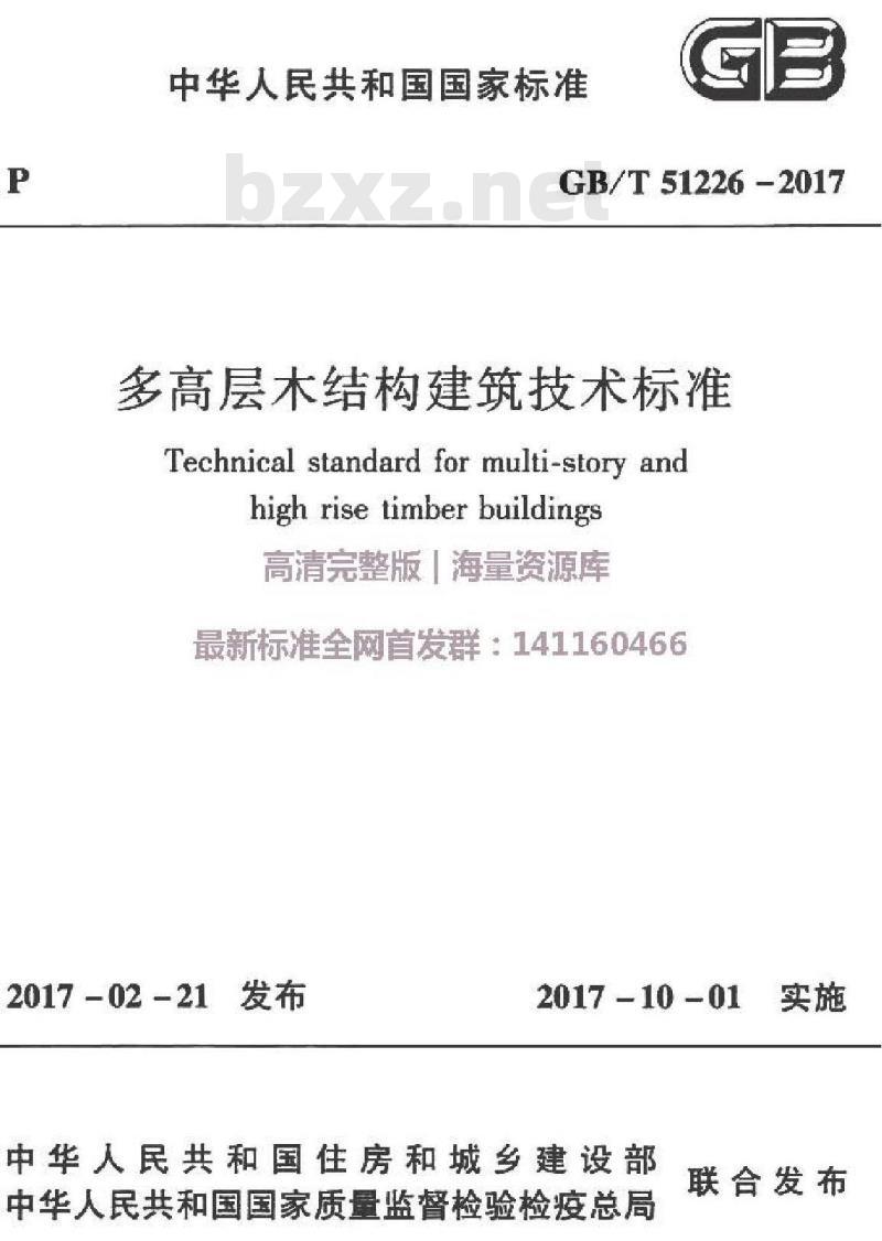 - GB/T 51226-2017 多高层木结构建筑技术标准