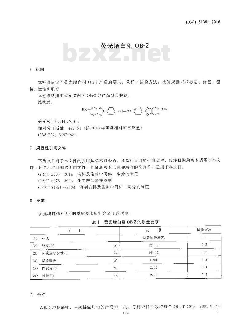 荧光增户剂()132的质量要求应符台表1的规定。表1荧光增白剂OB-2的质量要求