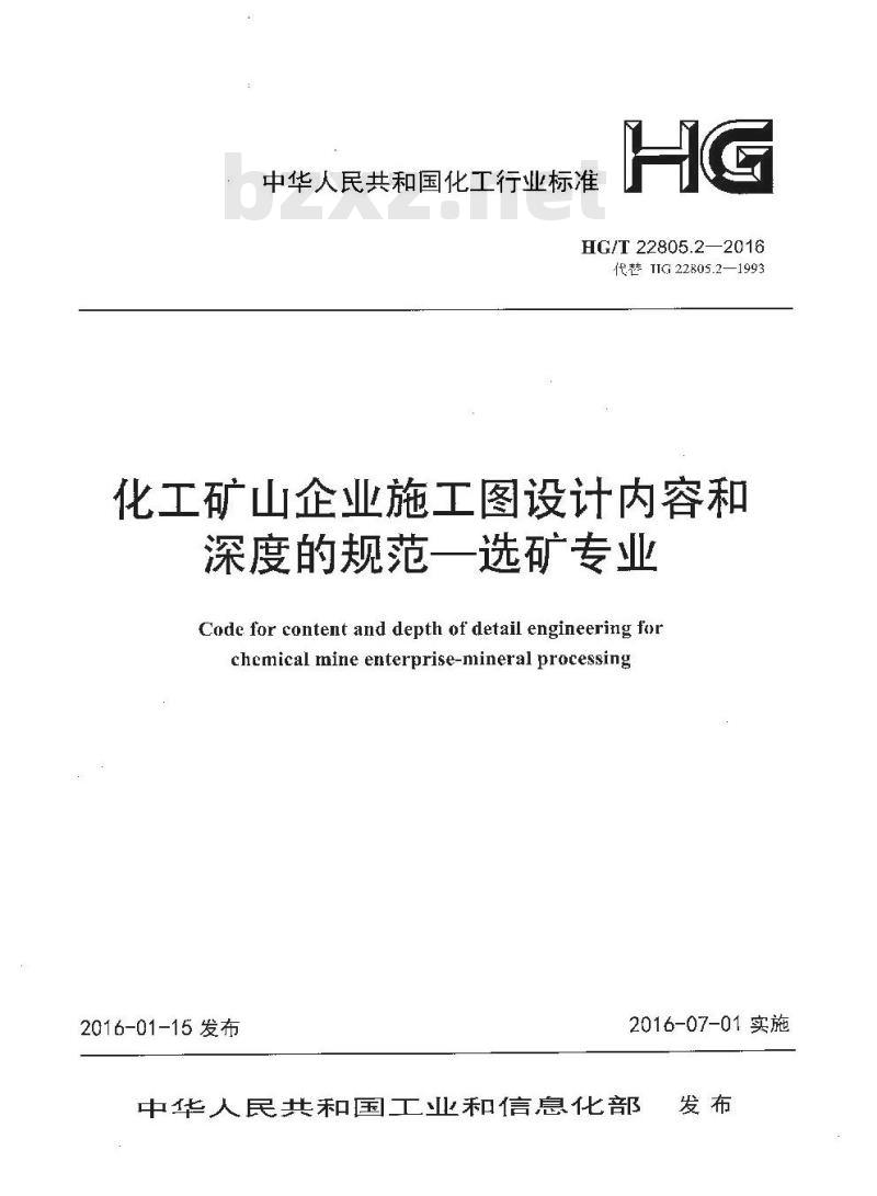 Code for contcnt and depth of detail engineering forehemical minc cnlerprise-mineral processingHG/T 22805. 22016