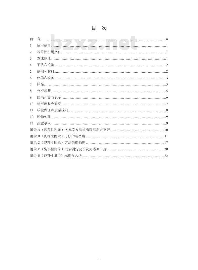 附录A(规范性附录)各元素方法检出限和测定下限附录B(资料性附录)方法的精密度附录C(资料性附录)方法的准确度附录D(资料性附录)元素测定波长及元素间干扰附录E(资料性附录)标准加入法1