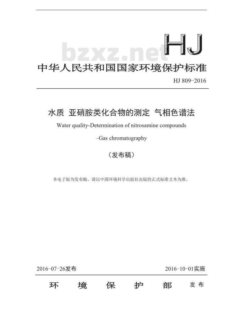 - HJ 809-2016 水质 亚硝胺类化合物的测定 气相色谱法