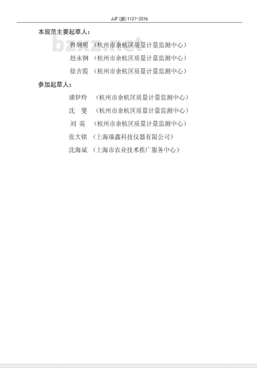 归口单位:浙江省质量技术监督局起草单位:杭州市余杭区质量计量监测中心参加起草单位:上海瑞鑫科技仪器有限公司上海市农业技术推广服务中心