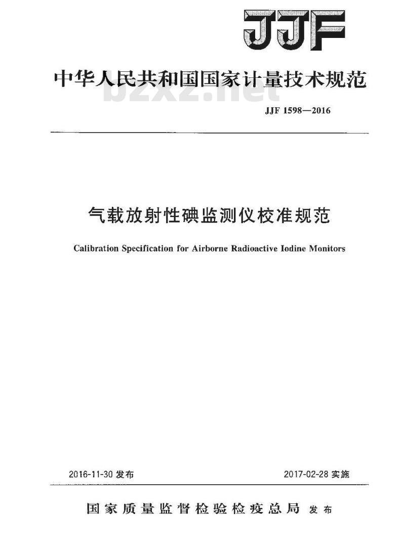 - JJF 1598-2016 气载放射性碘监测仪校准规范