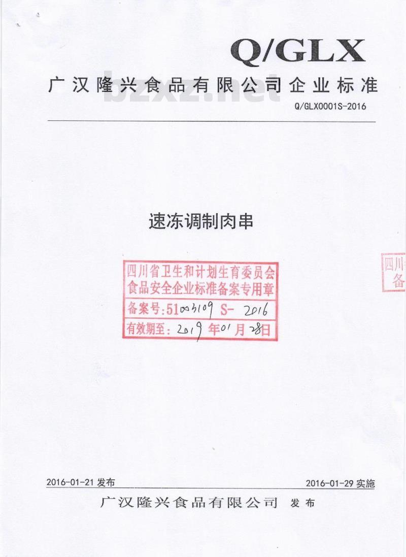 广汉隆兴食品有限公司企业标准Q/GLX0001S-2016