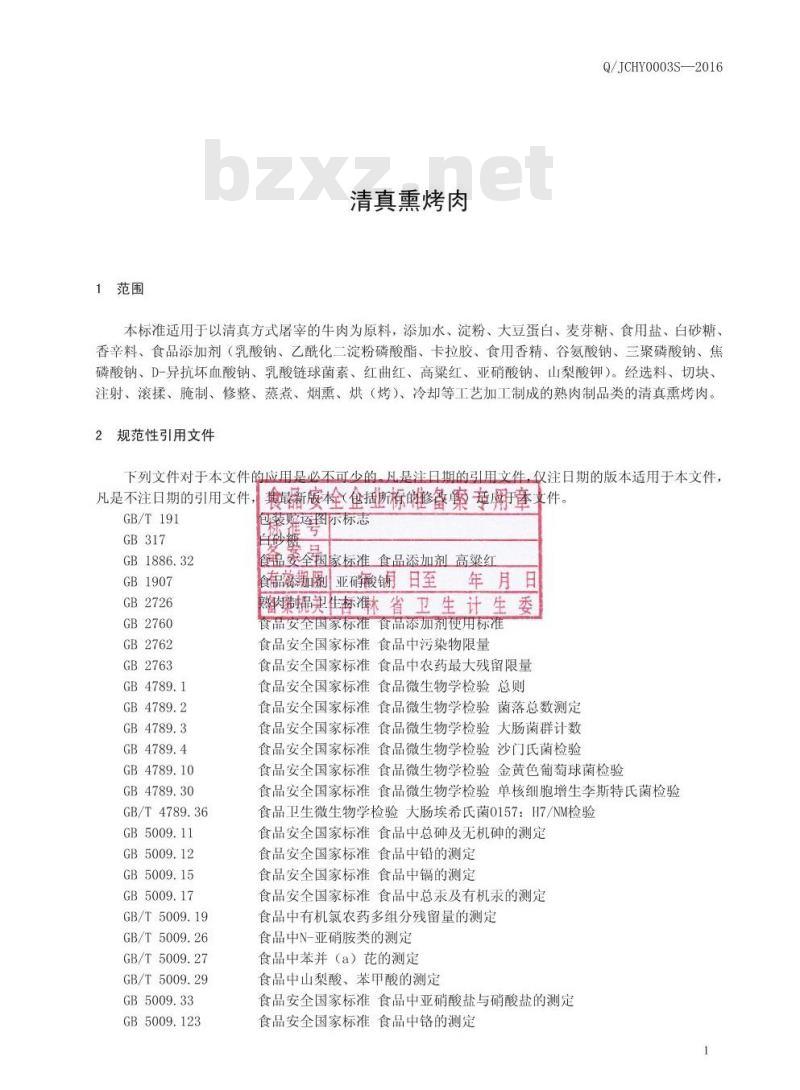 - QJCHY 0003 S-2016 吉林省长春皓月清真肉业股份有限公司 清真熏烤肉
