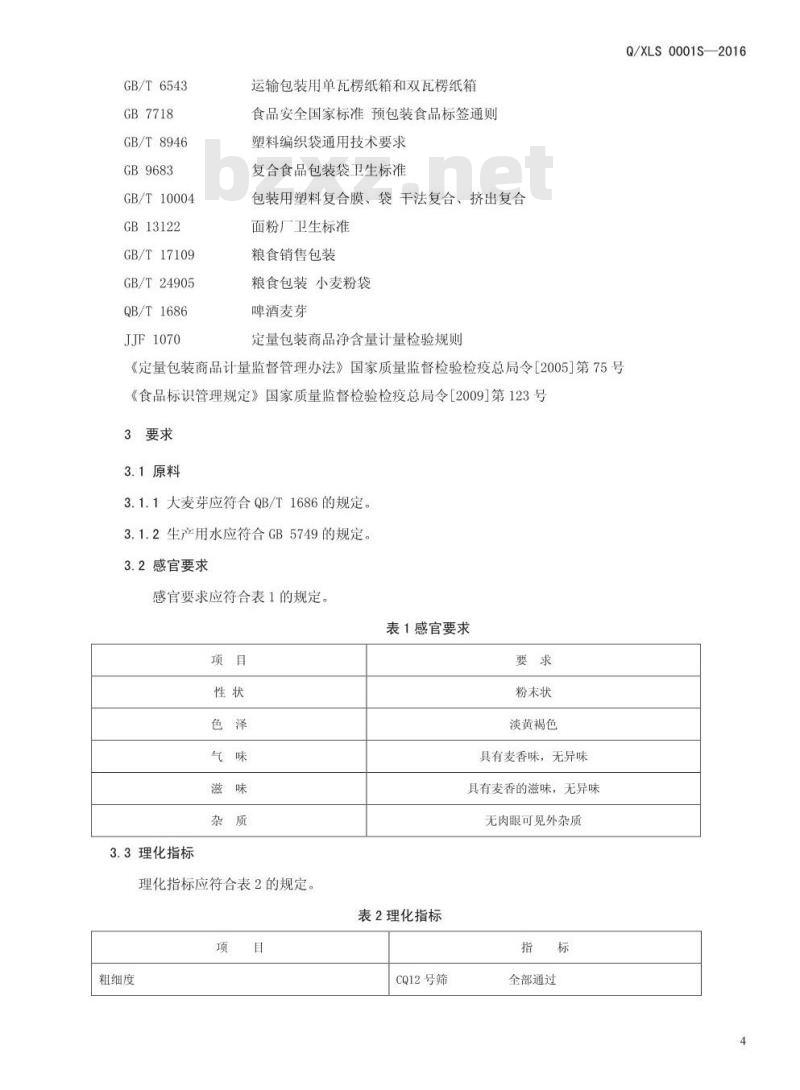 3.1.1大麦芽应符合QB/T1686的规定。3.1.2生产用水应符合GB5749的规定。3.2感官要求