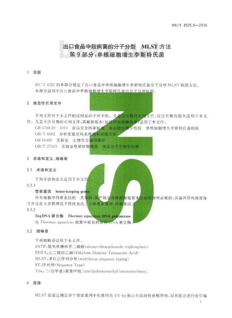 SN/T4525的本部分规定了出口食品中单核细胞增生李斯特氏菌分子分型MLST检测方法。本部分适用于出口食品中单核细胞增生2规范性引用文件
