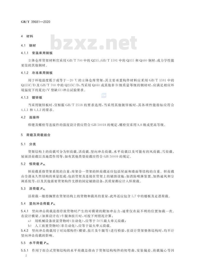 - GB∕T 39681-2020 立体仓库货架系统设计规范