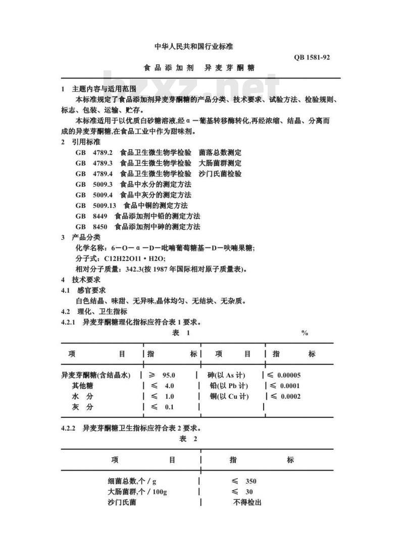 - QB 1581-1992 食品添加剂 异麦芽酮糖