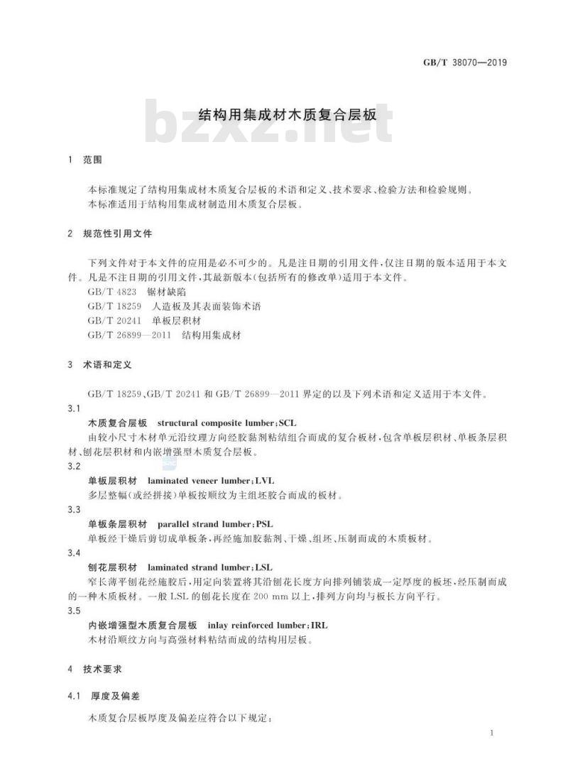 - GB/T 38070-2019 结构用集成材木质复合层板