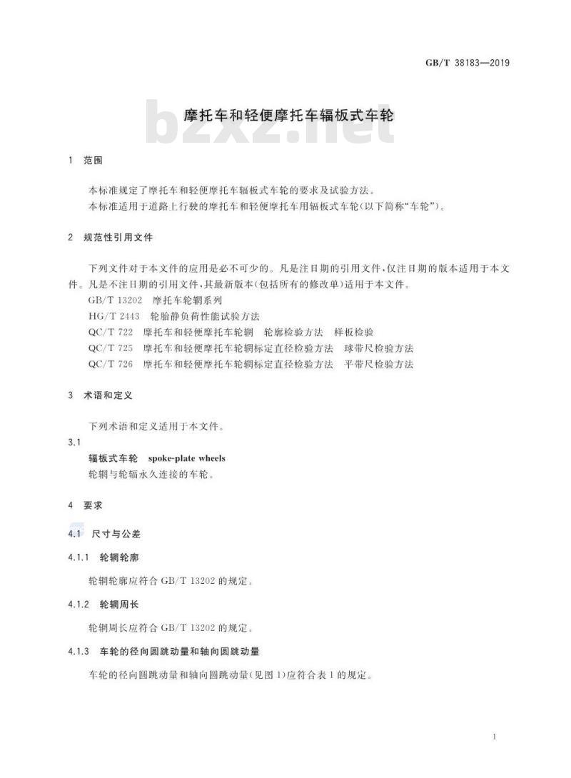 - GB/T 38183-2019 摩托车和轻便摩托车辐板式车轮
