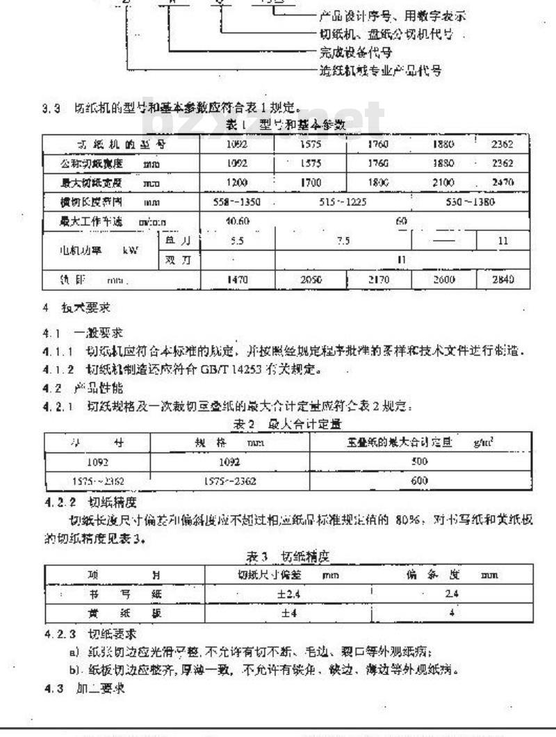 4.2.1切纸规格及一次裁切互盛纸的最大个计定量应符全表2规定表3最人合计定