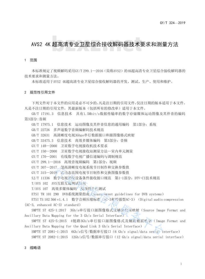 - GY/T 324-2019 AVS2 4K超高清专业卫星综合接收解码器技术要求和测量方法