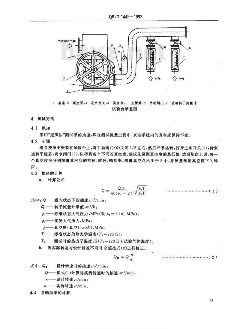 - QB/T 1445-1992 湿式罗茨真空泵性能测试方法
