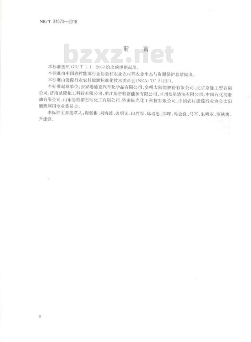 本标准按照GB/T1.12009给出的规则起草。本标准由中国农村能源行业协会和农业农村部农业生态与资源保护总站提出本标准由能源行业农村能源标准化技术委员会(NEA/TC8)归口。本标准起草单位:张家港迪克汽车化学品有限公司、皇明太阳能股份有限公司、北京京脉工贸有限公司、济南鼎隆化工科技有限公司、浙江斯帝特新能源有限公司、兰州蓝星清洗有限公司、中国石化润滑油有限公司、山东易特诺石油化工有限公司、济南极光化工科技有限公司、中国农村能源行业协会太阳能热利用专业委员会