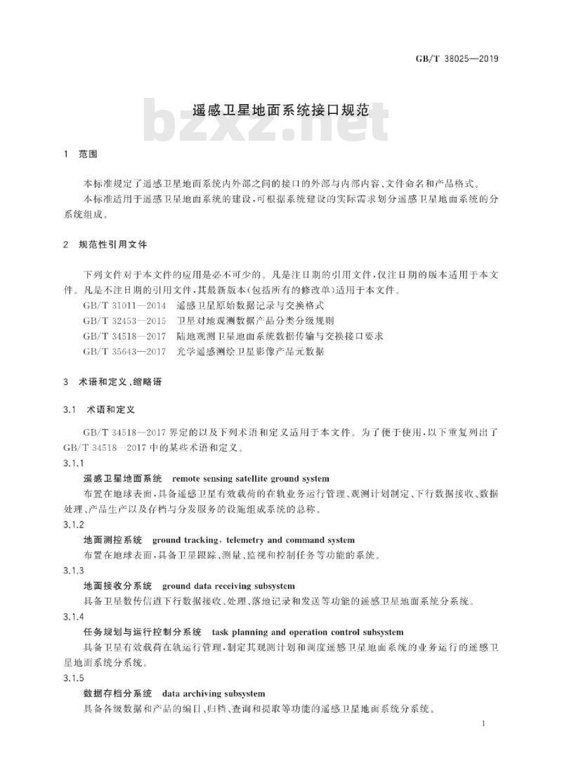 - GB/T 38025-2019 遥感卫星地面系统接口规范