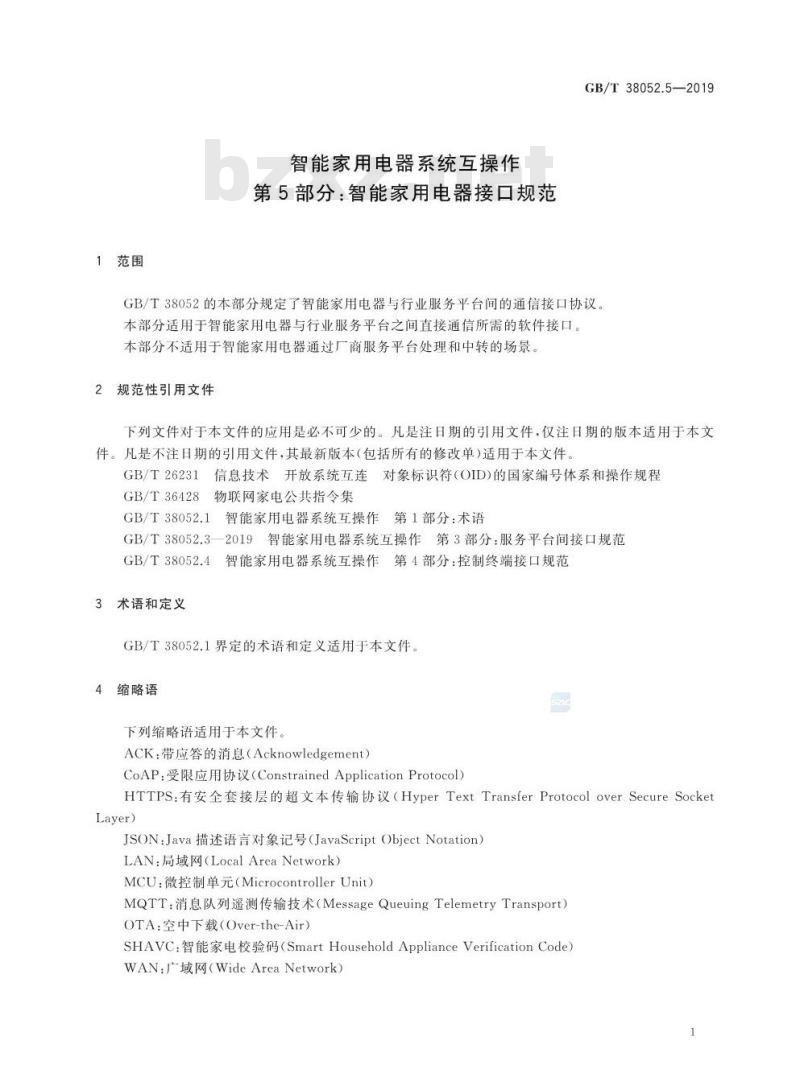 - GB/T 38052.5-2019 智能家用电器系统互操作 第5部分:智能家用电器接口规范