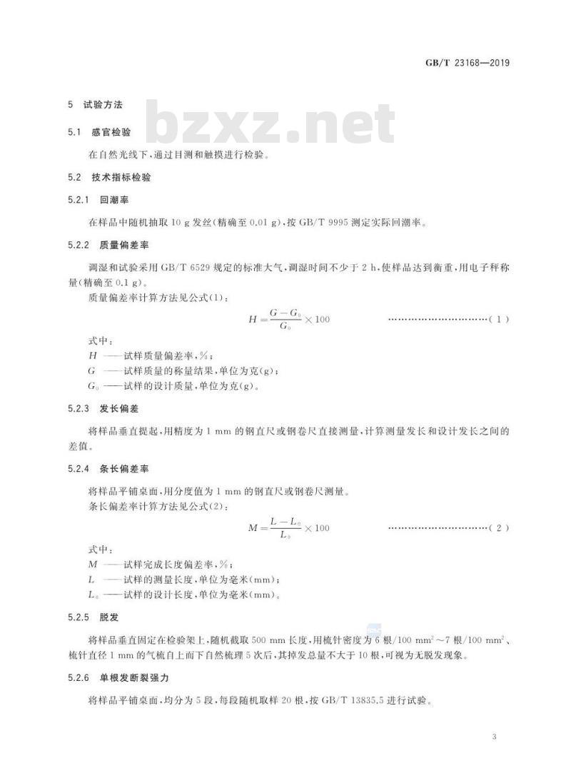 在样品中随机抽取10g发丝(精确至0.01g),按GB/T9995测定实际回潮率。5.2.2质量偏差率