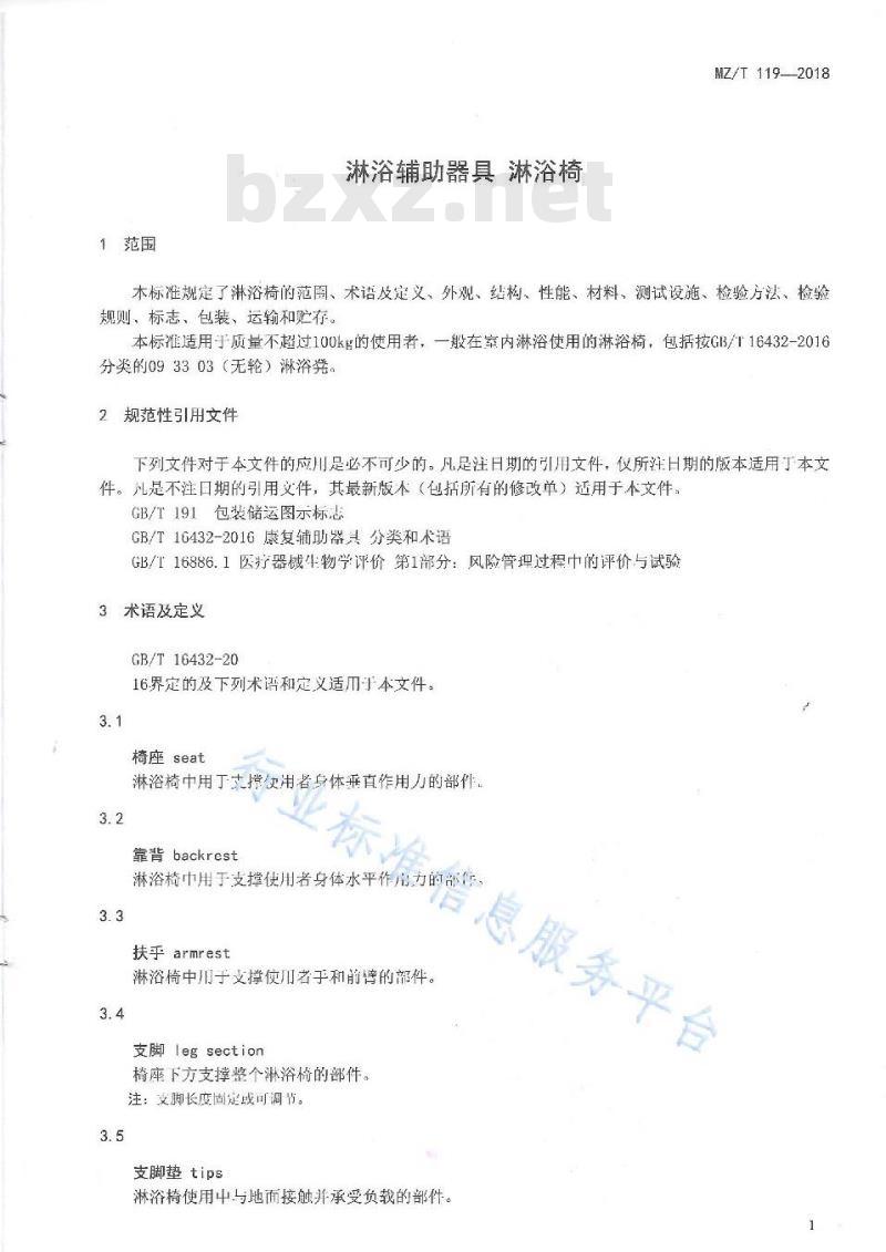 - MZ/T 119-2018 淋浴辅助器具 淋浴椅