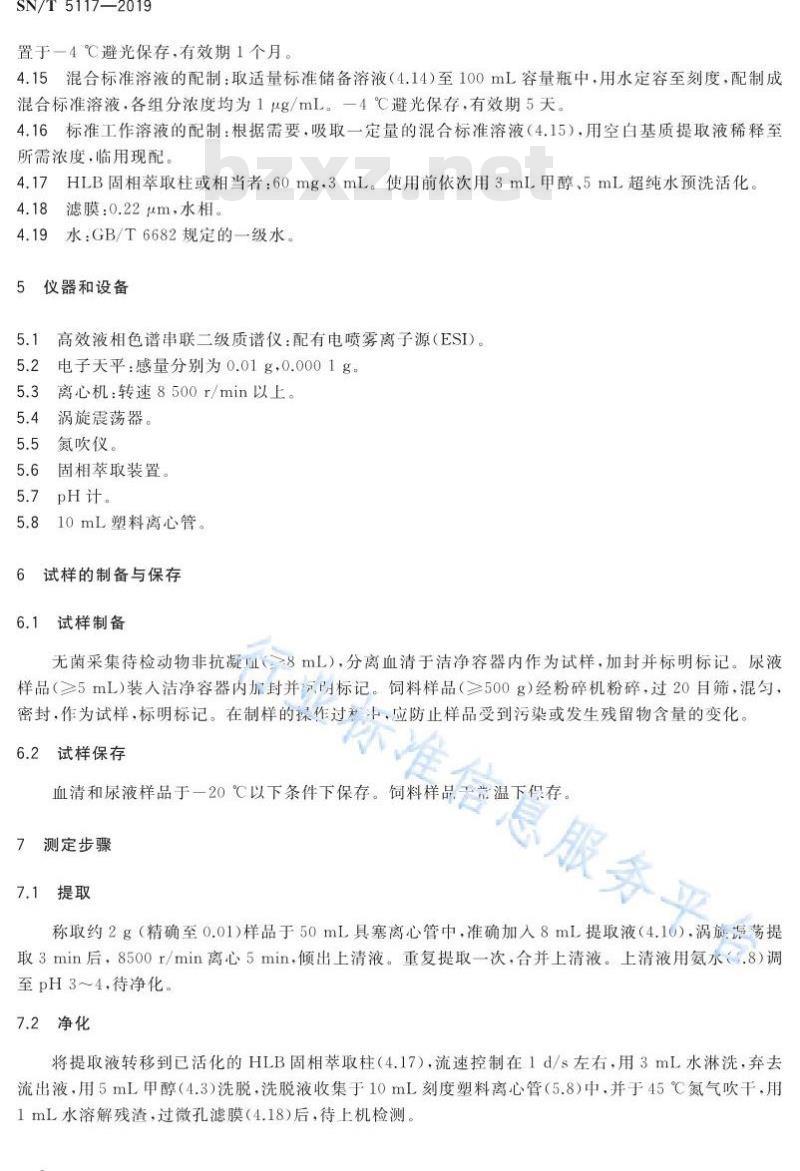 血清和尿液样品于一20℃以下条件下保存。饲料样品专带温下保存测定步骤