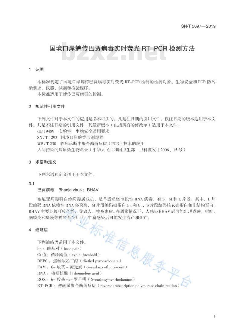 - SN/T 5097-2019 国境口岸蜱传巴贾病毒实时荧光RT-PCR检测方法