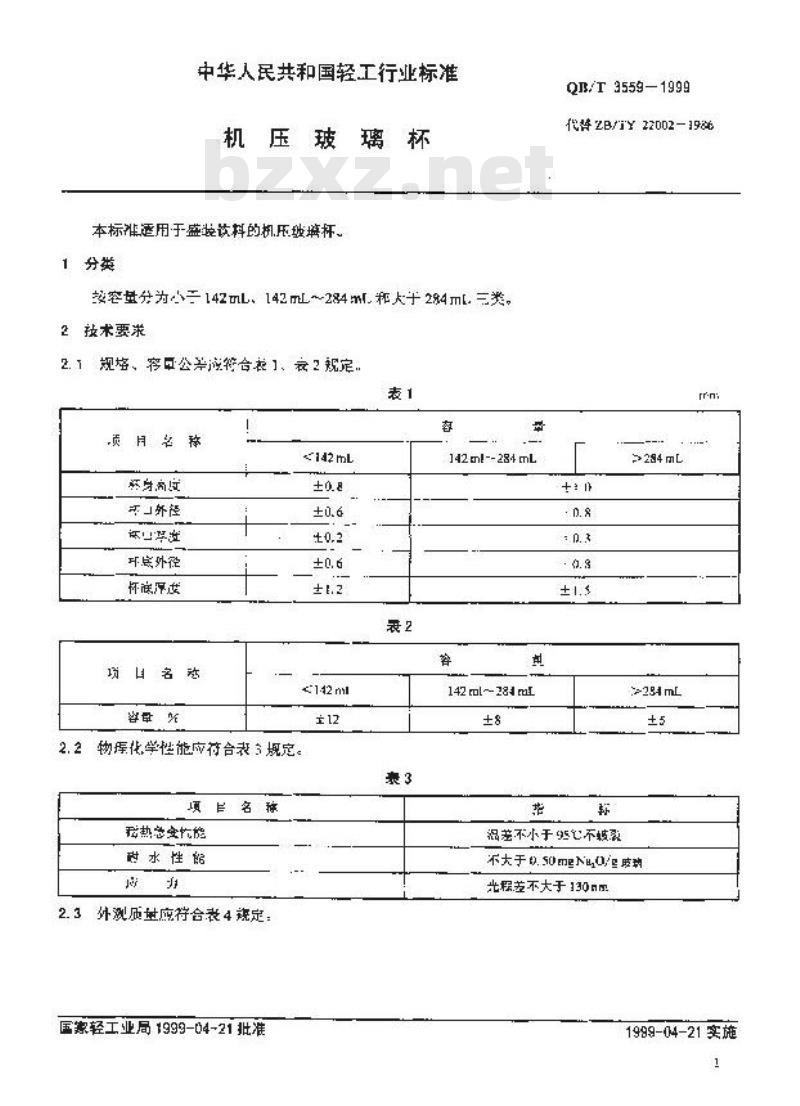 - QB/T 3559-1999 机压玻璃杯