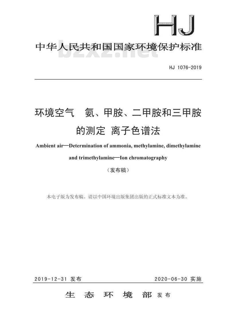 - HJ 1076-2019 环境空气 氨、甲胺、二甲胺和三甲胺的测定 离子色谱法