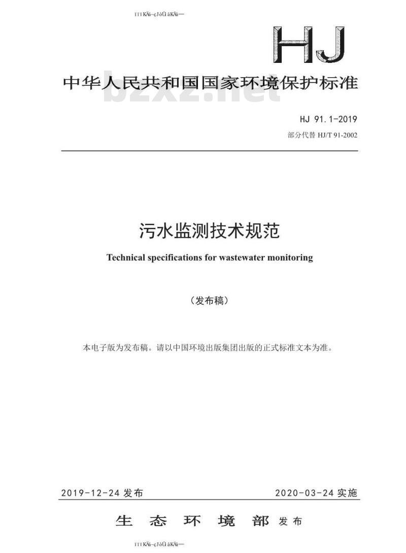 中华人民共和国国家环境保护标准HJ 91.1-2019