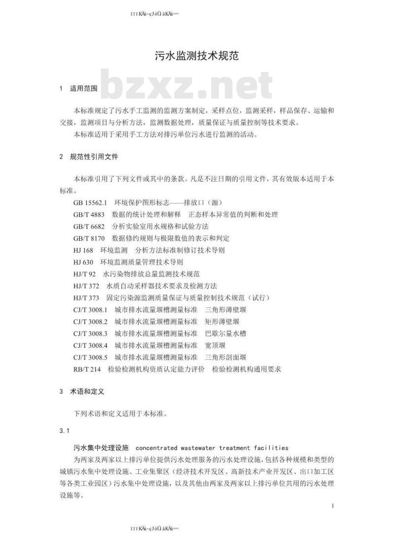 本标准规定了污水手工监测的监测方案制定,采样点位,监测采样,样品保存、运输和交接,监测项目与分析方法,监测数据处理,质量保证与质量控制等技术要求本标准适用于采用手工方法对排污单位污水进行监测的活动。2规范性引用文件