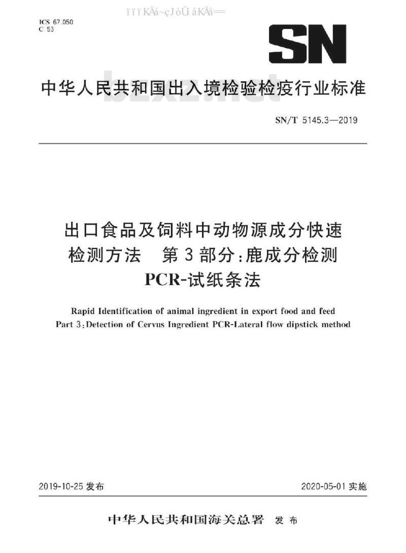 Rapid Identification of animal ingredient in export food and feedPart 3.Detection of Cervus Ingredient PCR-Lateral flow dipstick method2019-10-25发布