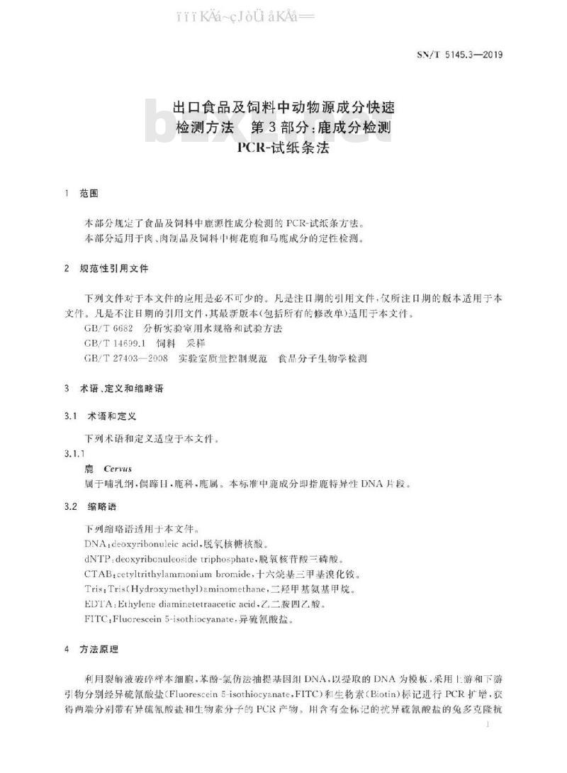 属于哺乳纲.偶蹄日,鹿科,鹿属。本标准中鹿成分即指鹿特异性DNA片段3.2缩略语