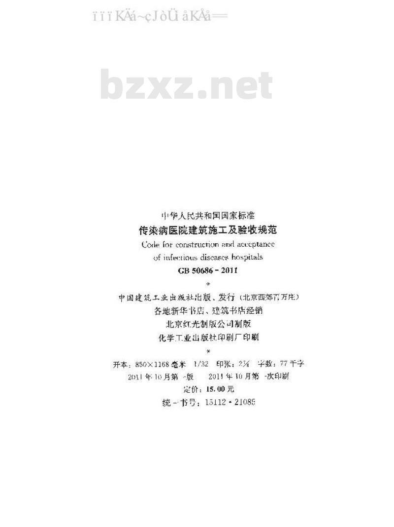 传染病医院建筑施工及验收规范Code for construction and acceptanceof infectious diseases hospitalsGB 50686 -2011