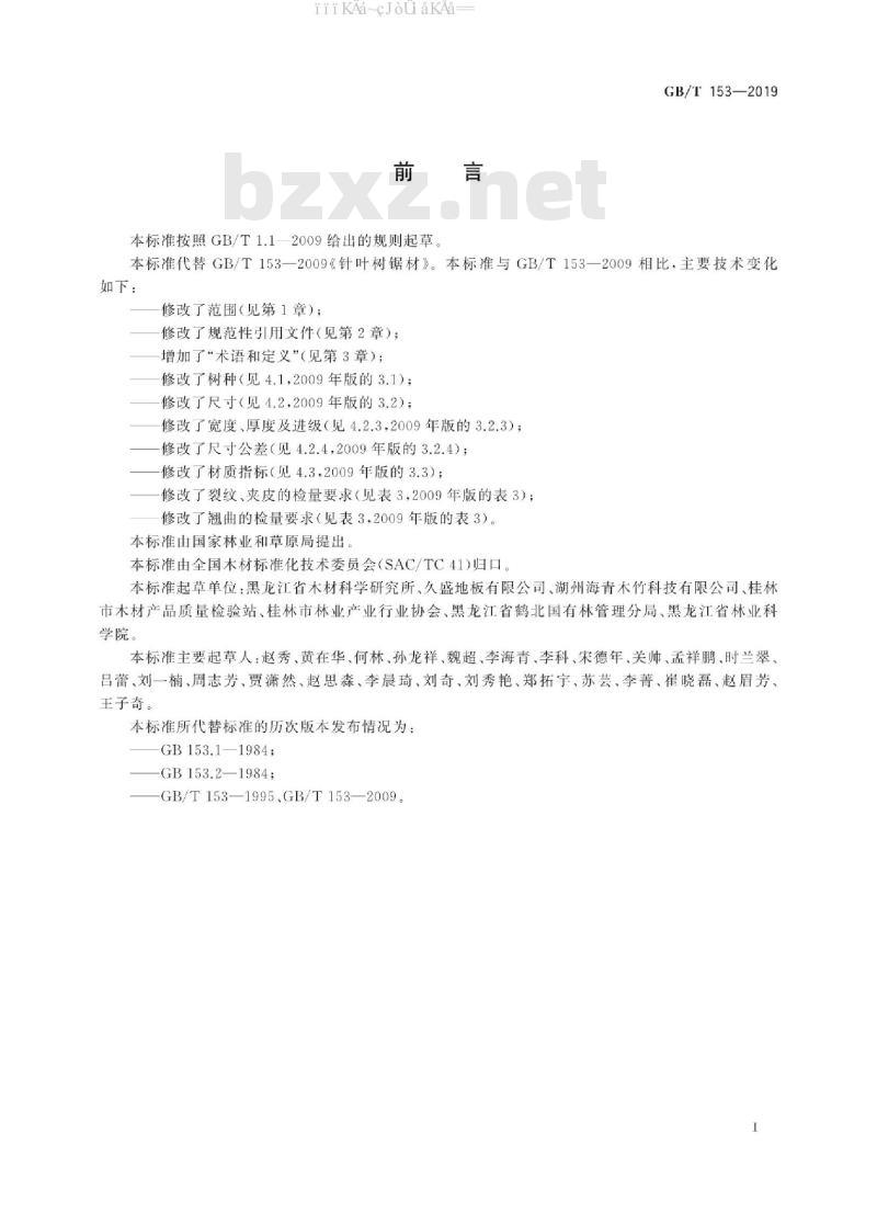 本标准GB/T 153-2019代替GB/T153-2009《针叶树锯材》。本标准与GB/T153-2009相比,主要技术变化如下: