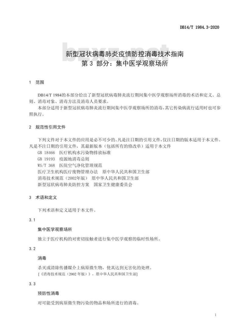 - DB14/T 1984.3-2020 新型冠状病毒肺炎疫情防控消毒技术指南 第3部分:集中医学观察场所