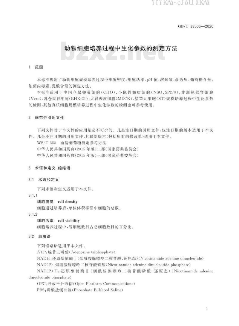 - GB/T 38506-2020 动物细胞培养过程中生化参数的测定方法