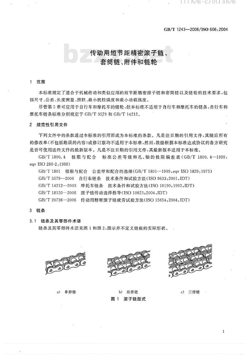 - GB/T 1243-2006 传动用短节距精密滚子链、套筒链、附件和链轮