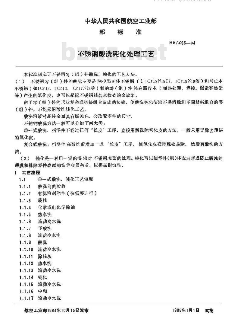 - HB/Z 83-84 不锈钢酸洗钝化处理工艺