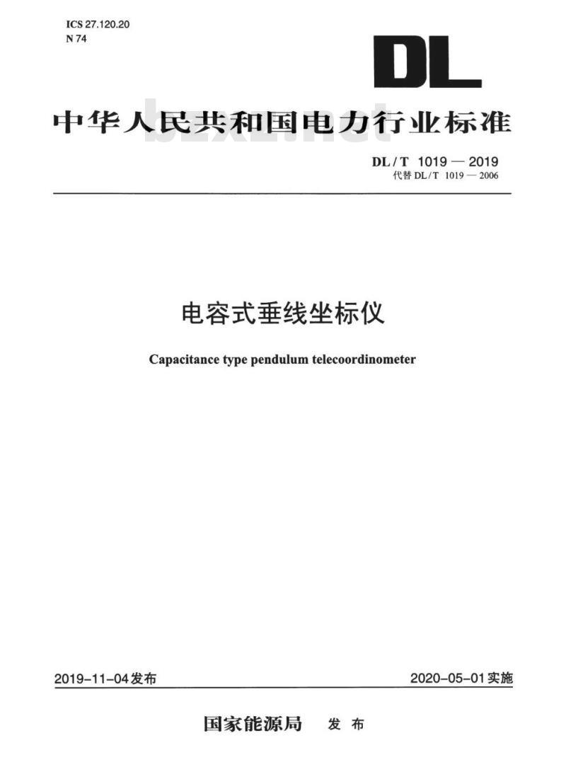 DL/T 1019-2019. Capacitance type pendulum telecoordinometer.