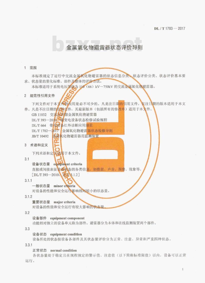 - DL/T 1703-2017 金属氧化物避雷器状态评价导则