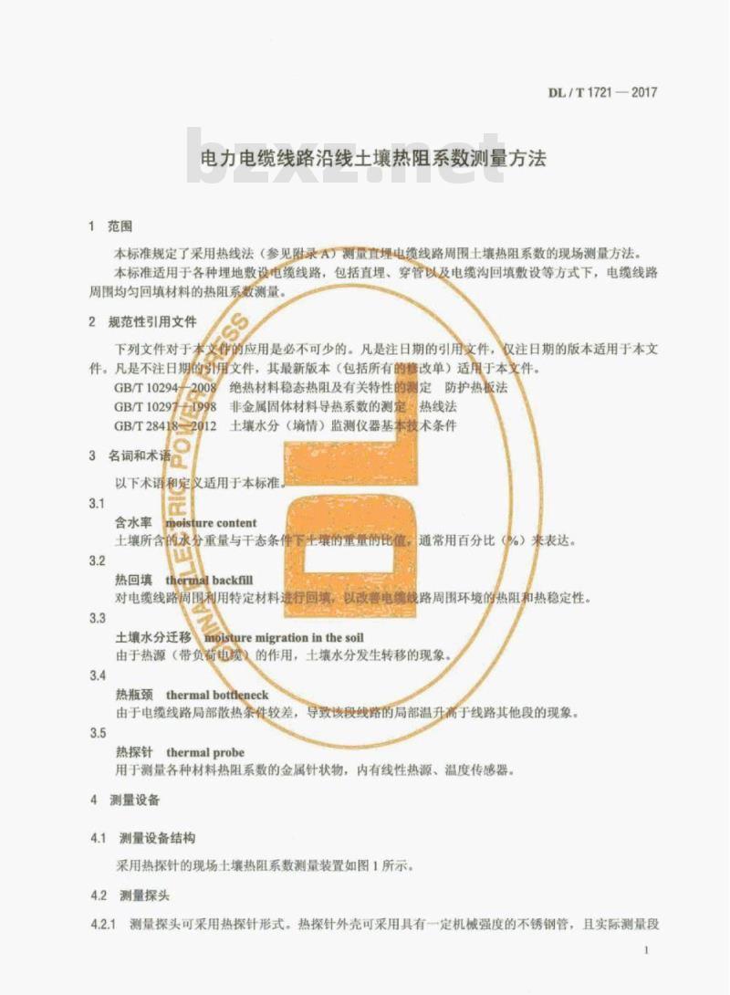 - DL/T 1721-2017 电力电缆线路沿线土壤热阻系数测量方法