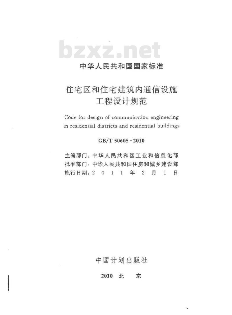 - GB/T 50605-2010 住宅区和住宅建筑内通信设施工程设计规范