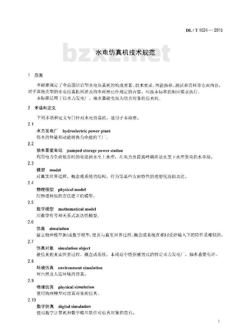 DL/T 1024适用于以水力发电厂、抽水蓄能电站为仿真对象的仿真机。