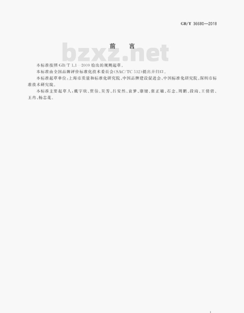 本标准按照GB/T1.1-2009给出的规则起草。本标准由全国品牌评价标准化技术委员会(SAC/TC532)提出并归口。GB/T36680—2018