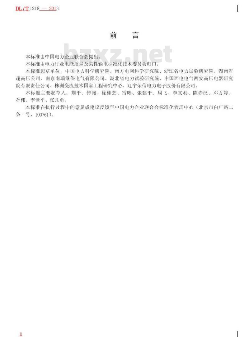 本标准由电力行业电能质量及柔性输电标准化技术委员会归口。本标准起草单位:中国电力科学研究院、南方电网科学研究院、浙江省电力试验研究院、湖南省超高压公司、南京南瑞继保电气有限公司、湖北省电力试验研究院、中国西电电气西安高压电器研究院有限责任公司、株洲变流技术国家工程研究中心、辽宁荣信电力电子股份有限公司。本标准主要起草人:荆平、傅闯、徐桂芝、雷晰、张建平、周飞、李文利、陈赤汉、邓万婷、孙伟、李世平、张凡勇。