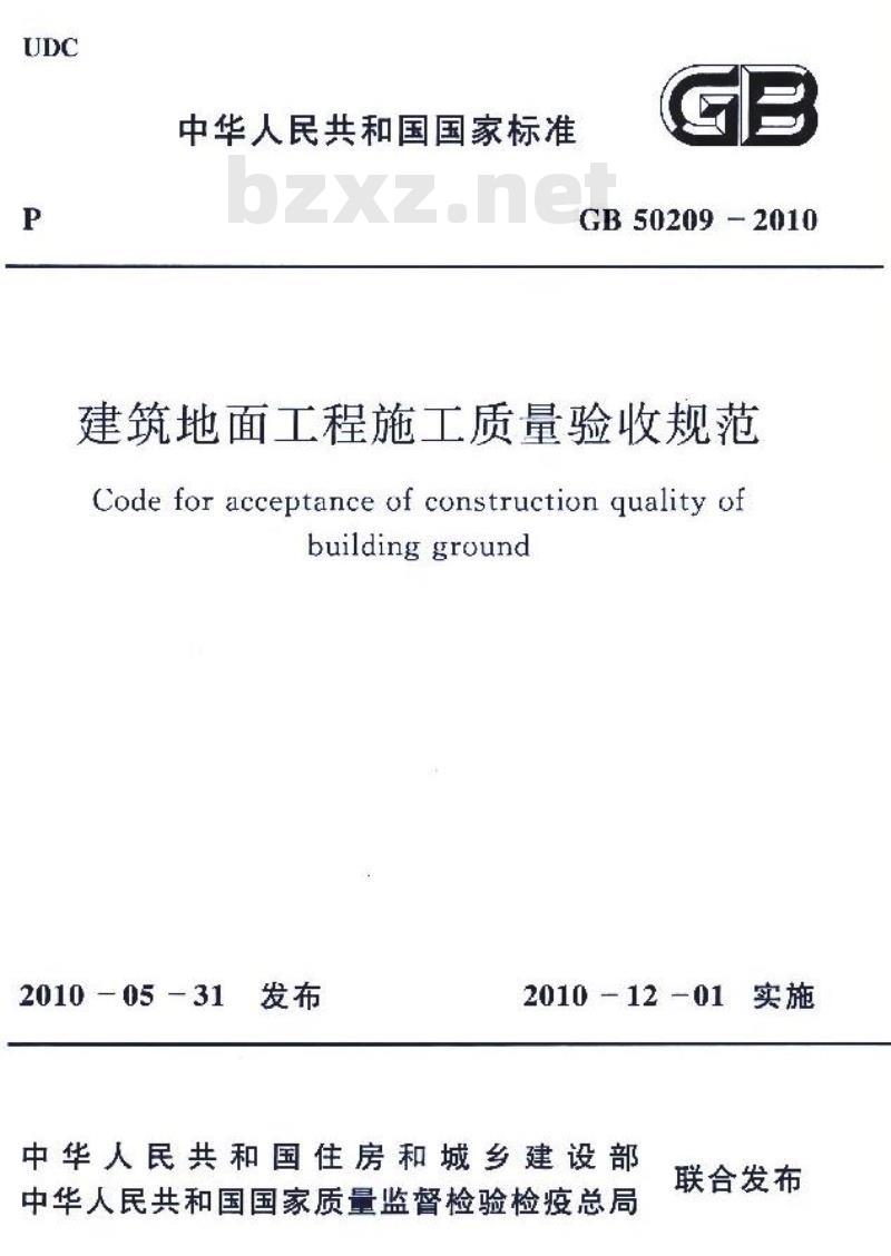 《建筑地面工程施工质量验收规范》的公告现批准“建筑地面工程施工质量验收规范为国家标难,编号为GB50209一2010,自2010年12月1日起实施。其币,第3.0.3、3.0.5、3.0.18、4.9.3、4.10.1、4.10.13、5.7.4条为强制性条文.必须业格执行。原建筑地面工程施工质量验收规范》CB50209-2002同时废止。